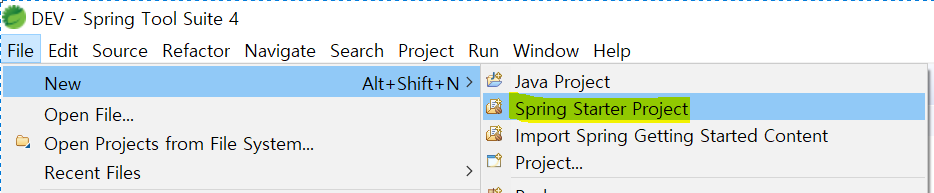 - File > New > Spring Starter Project
