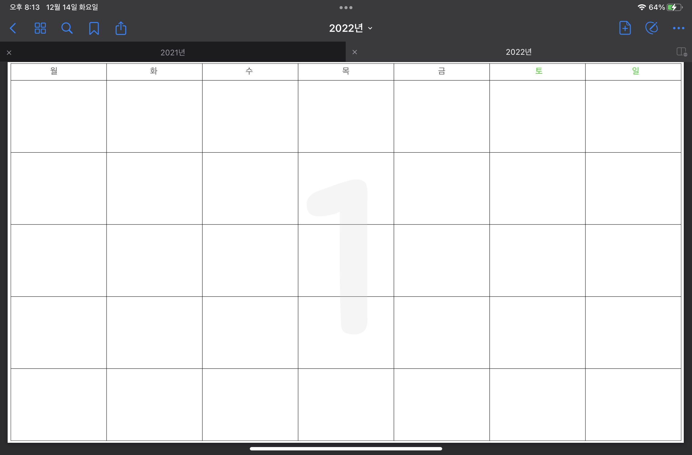 월간 다이어리 작성시 매번 확대해야 하는 번거로움이 있었다.